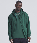 80% ringspun cotton/20% polyester.* Soft cotton faced fabric. Brushed back fleece. Drop shoulder style. Double fabric hood with self colour drawcord. Full length covered plastic zip. Front pouch pockets. Ribbed cuffs and hem. Twin needle stitching. Tear out label.