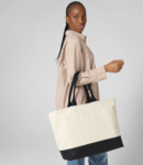 Recycled polyester soft touch lining.Structured design.Carry/shoulder straps (58cm long).Main zip compartment.Internal zip valuables pocket.High shine gold metal trims.Contrast base and handles (natural is self colour).Tear out label.Capacity 31 litres.Concealed zip for decoration.